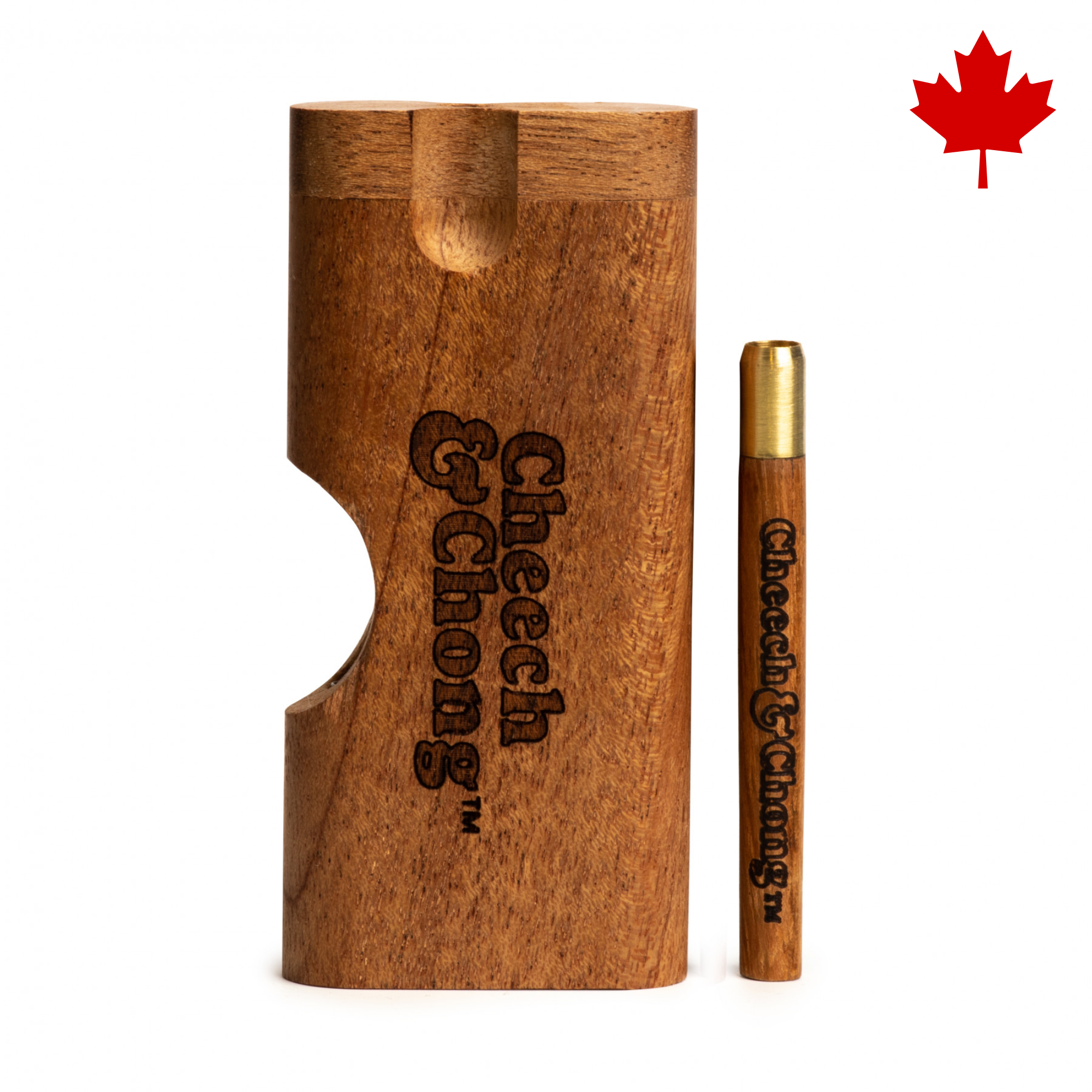 Time to load up the fibreweed van and hit the road! Now you can take your stash to go with these handy Cheech & Chong® Glass Dugouts. Each one includes a brass-tipped wooden bat to match the dugout and has a lockable twist top to keep your stash safe and secure. Available in a variety of assorted wood grains. Canadian-Based Company.