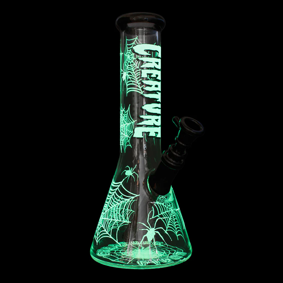 Creature x GEAR Premium - 12" Clear Glow-in-the-Dark Spiderweb Glass Beaker