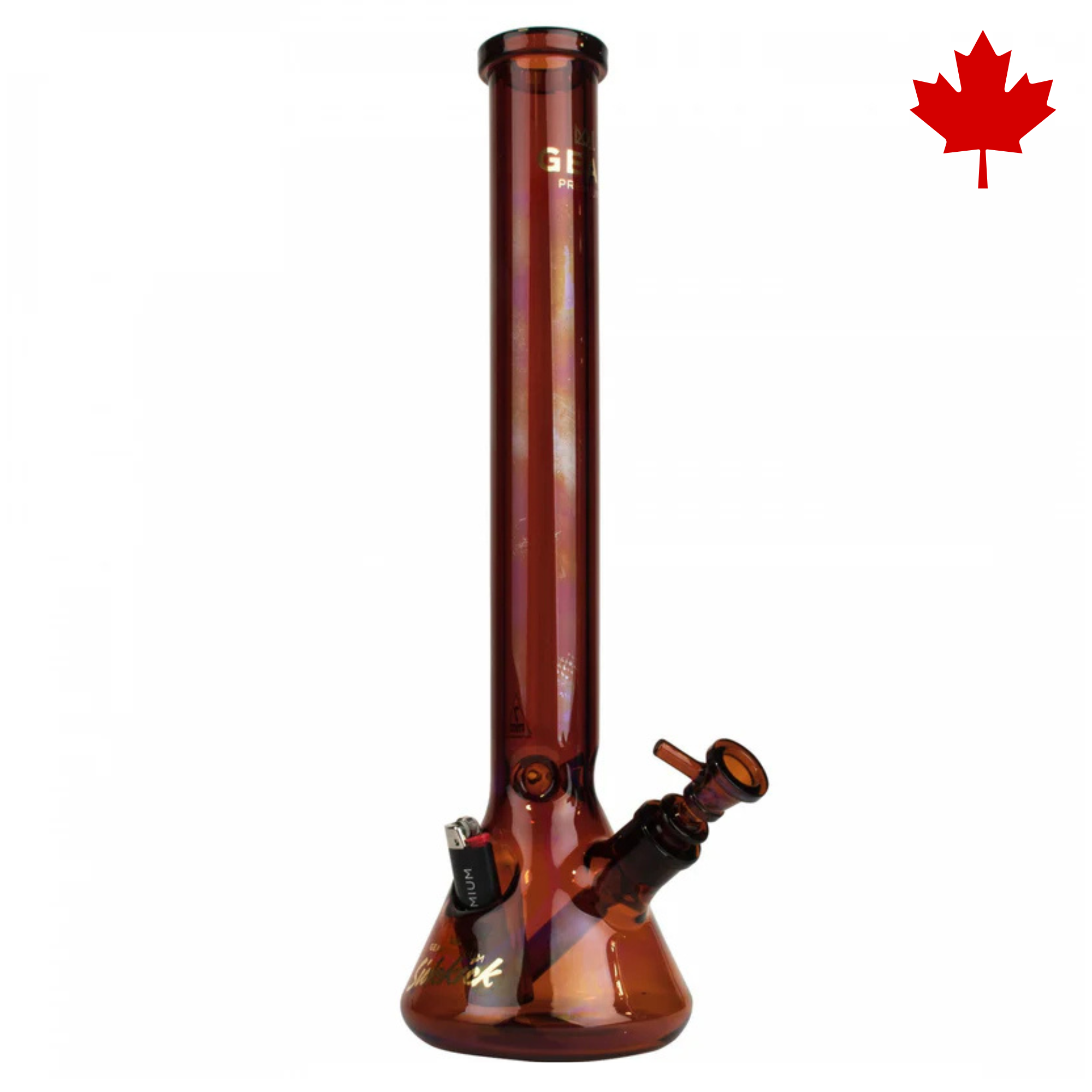 The most popular GEAR Premium® beaker base design just got a lot cooler (or maybe hotter?) because now it comes with a beautifully designed, patented lighter holster, so you’ll always know where to find your fire! Canadian Based Company.