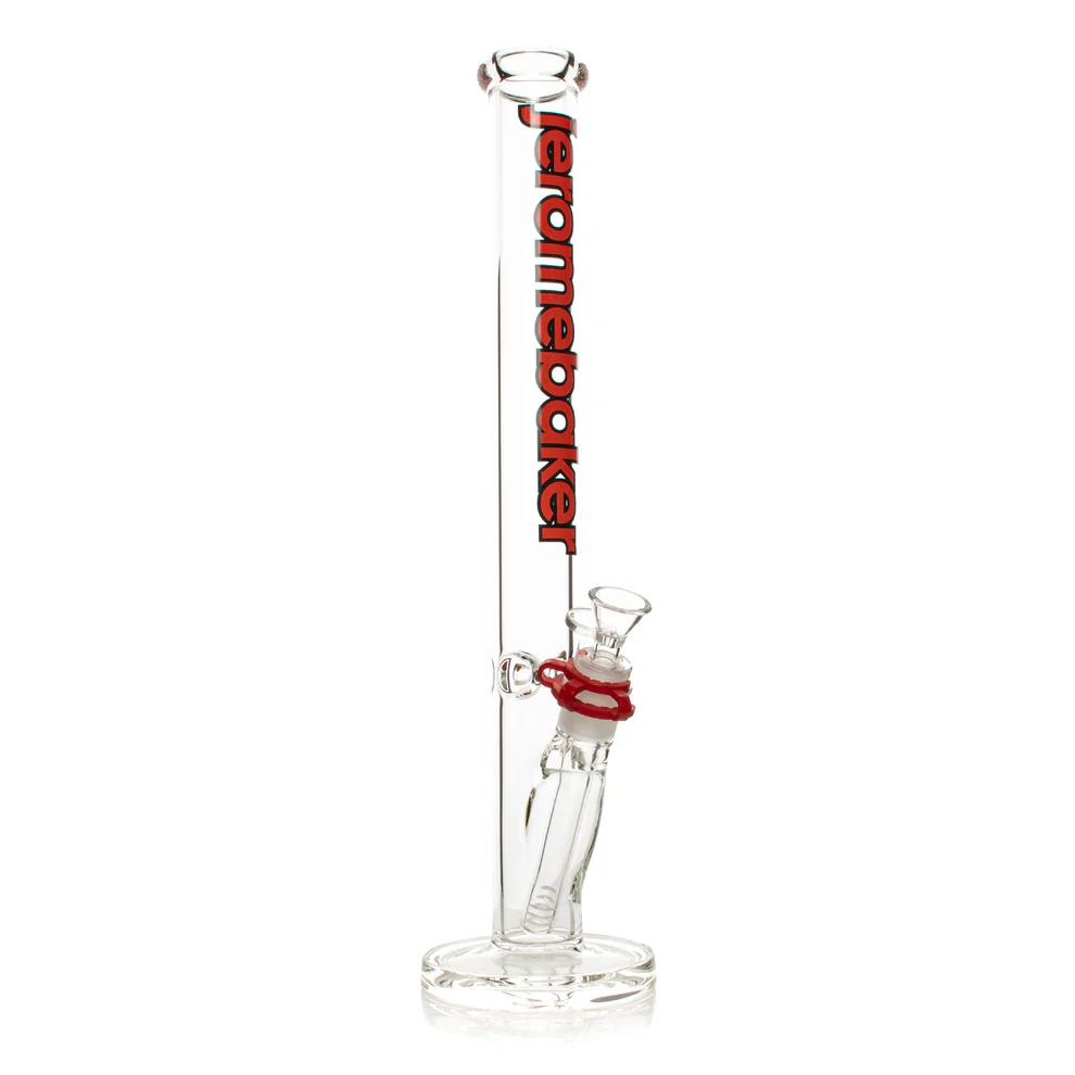 The Jerome Baker 16" Straight Base Water Pipe is made from 100% borosilicate glass, ensuring both strength and quality craftsmanship. Featuring a built-in ice catcher for cool, smooth hits and a rounded mouthpiece for added comfort, it's designed for an elevated smoking experience. With its bold decal design and included K clip for stability, this piece is as functional as it is stylish.