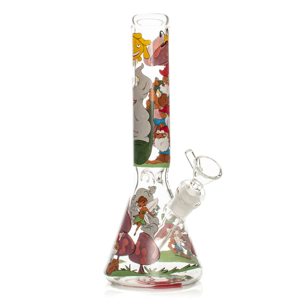 Step into a secret garden with the 10” Knotty Gnomes Water Pipe by Red Eye Glass®. Spark up and join the woodland creatures dancing across the 100% borosilicate glass. Complete with a built-in ice catcher, this piece brings a touch of magic to every hit.