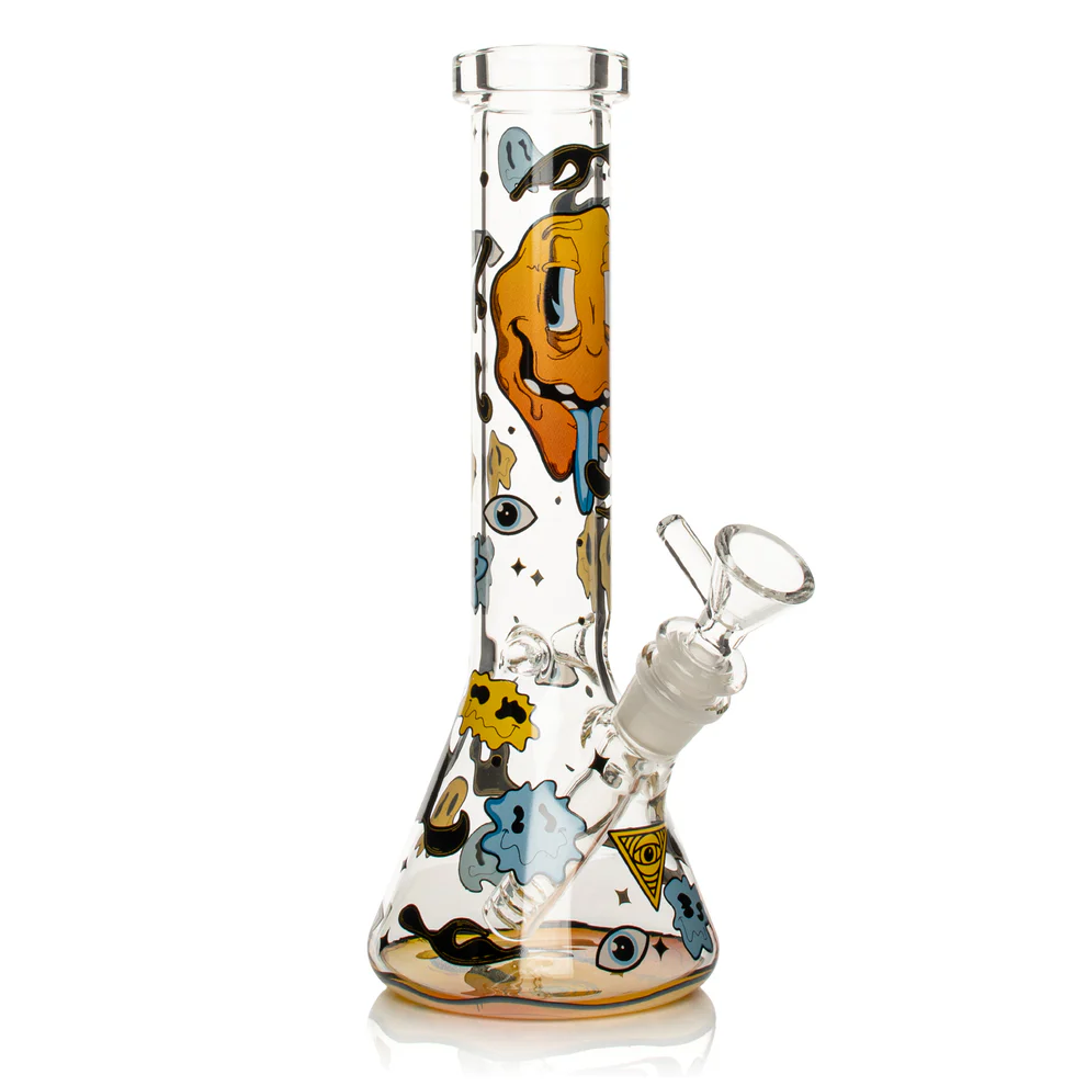 Feel your face melt off after a massive hit from this 10" Smiley Face Water Pipe from Red Eye Glass®. With a built-in ice catcher and mind-bending decals, this pipe is made for big rips and even bigger trips.