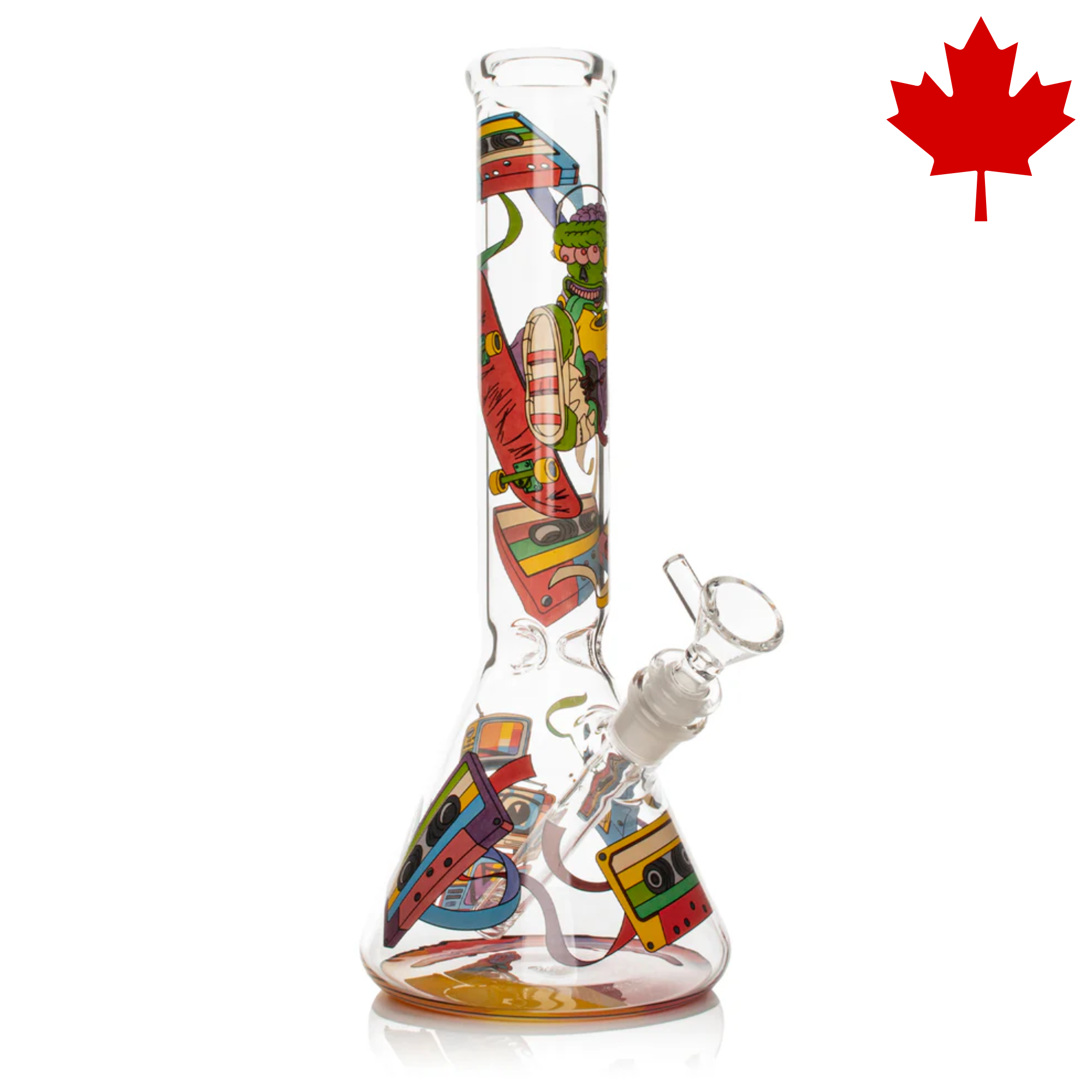 Throwback to an iconic decade with the 12” 90s Nostalgia Water Pipe from Red Eye Glass®. Decked out in decals that’ll take you straight to the era of blockbuster marathons, Furbies, and smoking in your parents' basement. Only now, the glass is cleaner and the grass is greener.